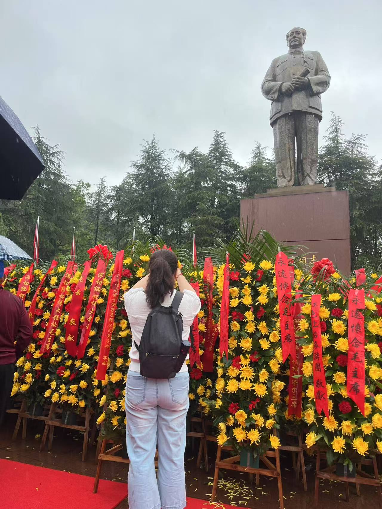 次日,盡管大雨傾盆,卻澆不滅黨員們的熱情。在韶山毛澤東銅像廣場,全體黨員莊嚴(yán)肅立,向毛澤東銅像敬獻(xiàn)花籃,深深三鞠躬,表達(dá)對偉人的無限崇敬與追思。隨后,大家參觀了毛澤東故居。這座始建于1878年的土木結(jié)構(gòu)農(nóng)舍,是毛澤東誕生和度過少年時光的地方 ,屋內(nèi)陳列的舊物,無聲訴說著偉人的成長經(jīng)歷,激勵著黨員們不忘初心、艱苦奮斗。滴水洞曾是毛澤東回鄉(xiāng)居住之所,這里靜謐清幽,黨員們在此感受偉人的家國情懷。